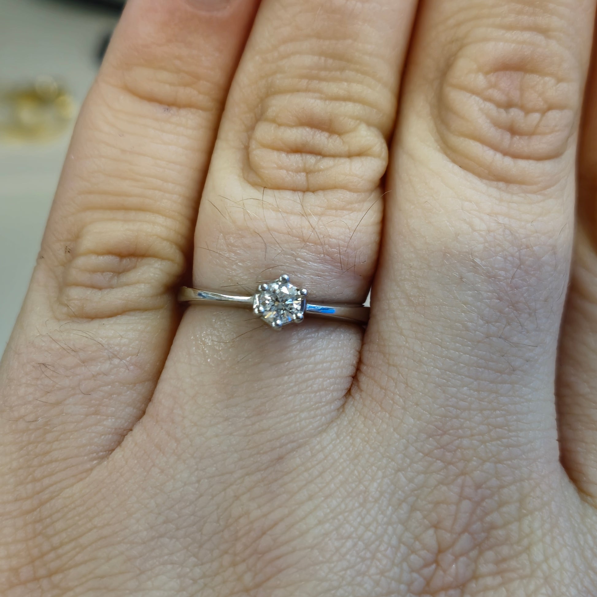 Discover timeless elegance with this exquisite platinum solitaire diamond ring. Featuring a brilliant round cut 0.25ct diamond, securely set in a classic six-prong setting, this ring radiates understated sophistication. The polished platinum band offers a sleek and durable foundation, making it perfect for everyday wear or a special occasion. This is a piece of jewellery that will be cherished for generations.