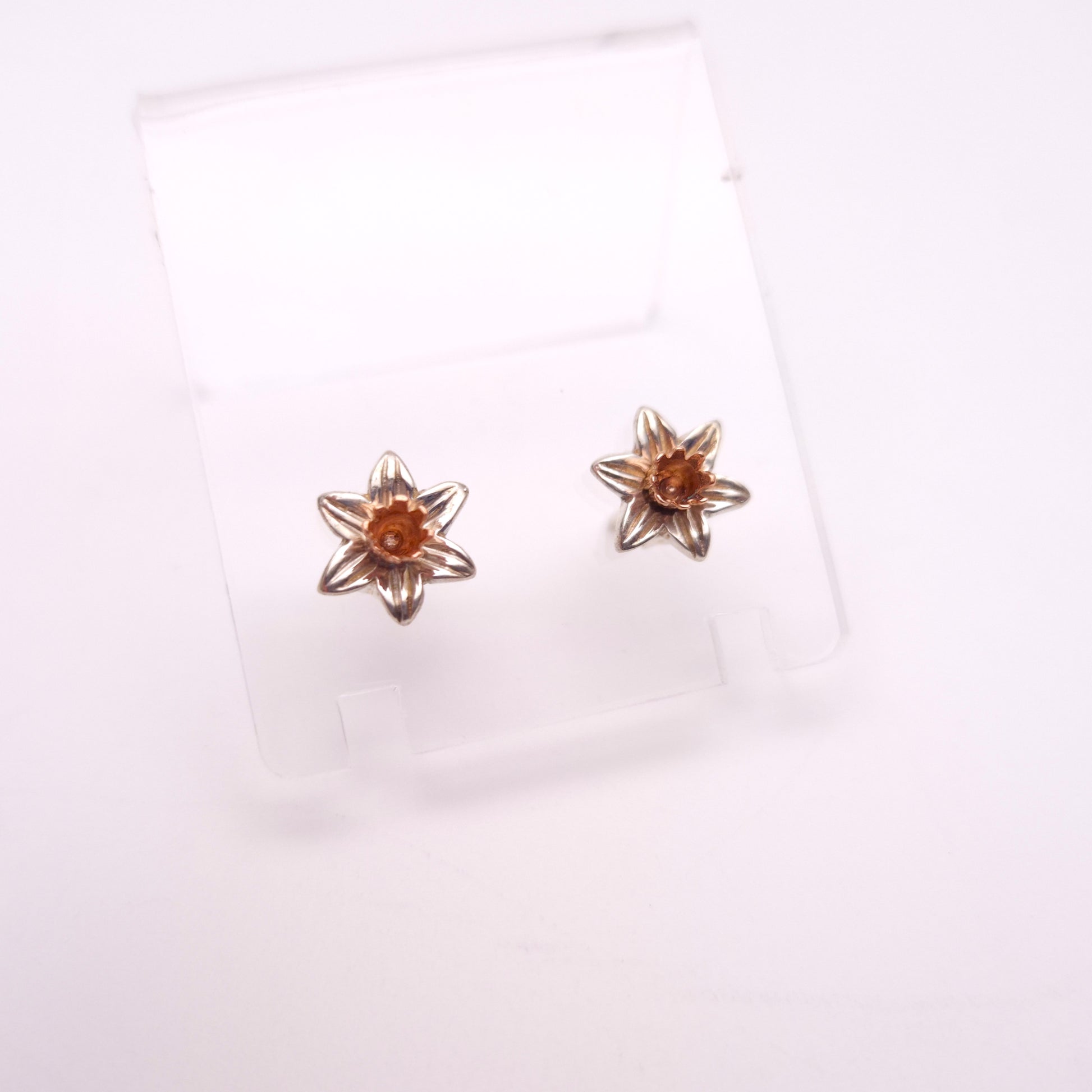 Sterling Silver and Rose Gold Clogau Daffodil Stud Earrings