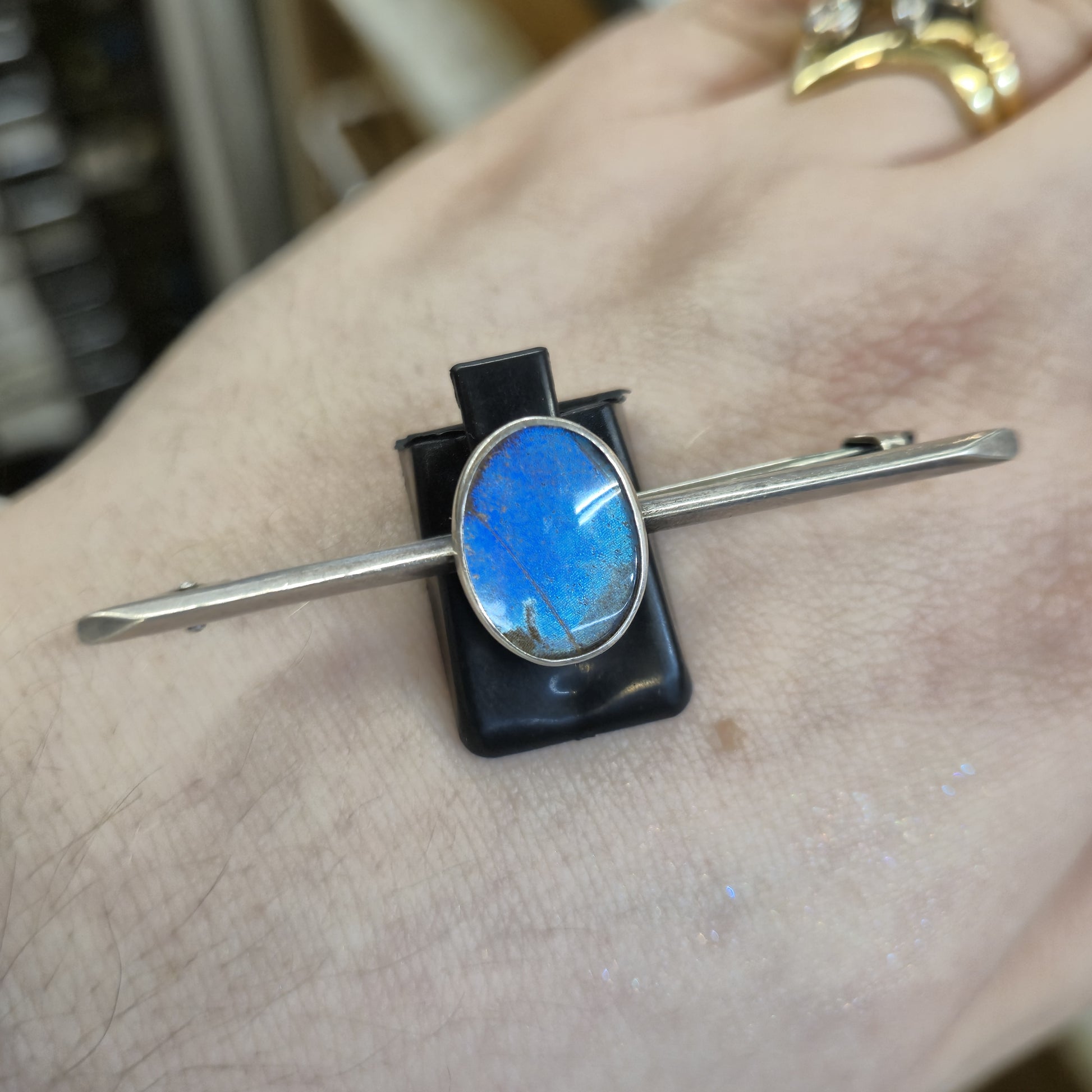 Sterling Silver Antique 1921 Oval Butterfly Wing Set Bar Brooch