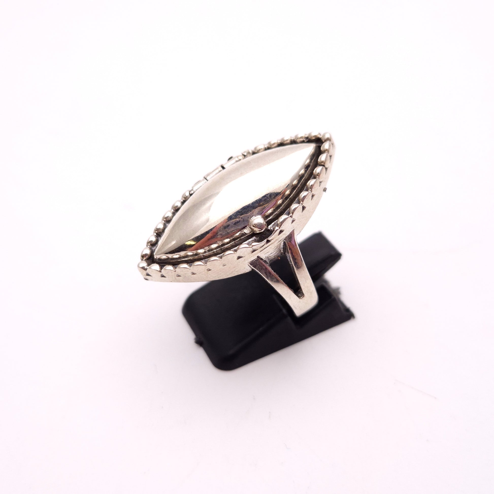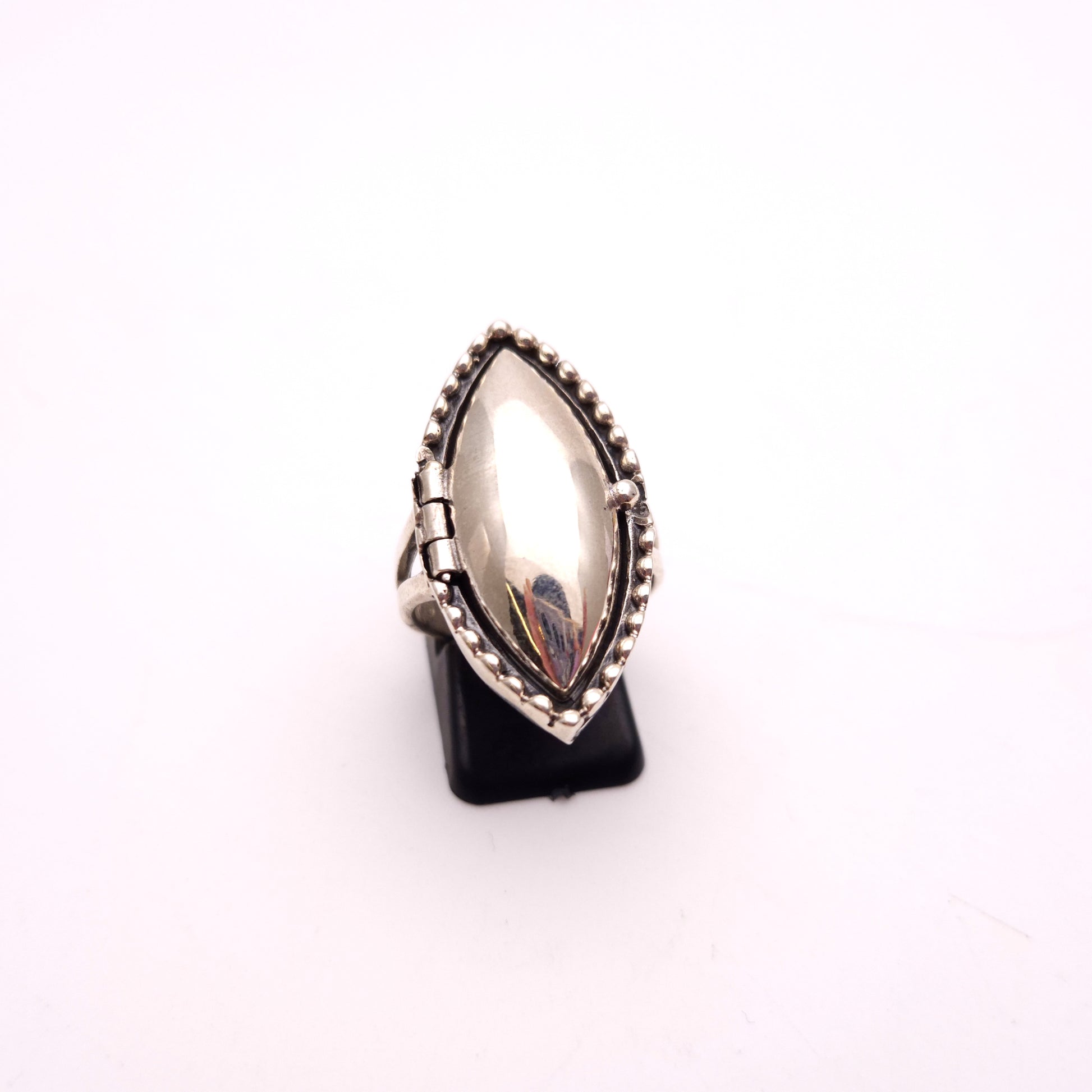 Sterling Silver Beaded Border Marquise Shape Locket / Poison Ring