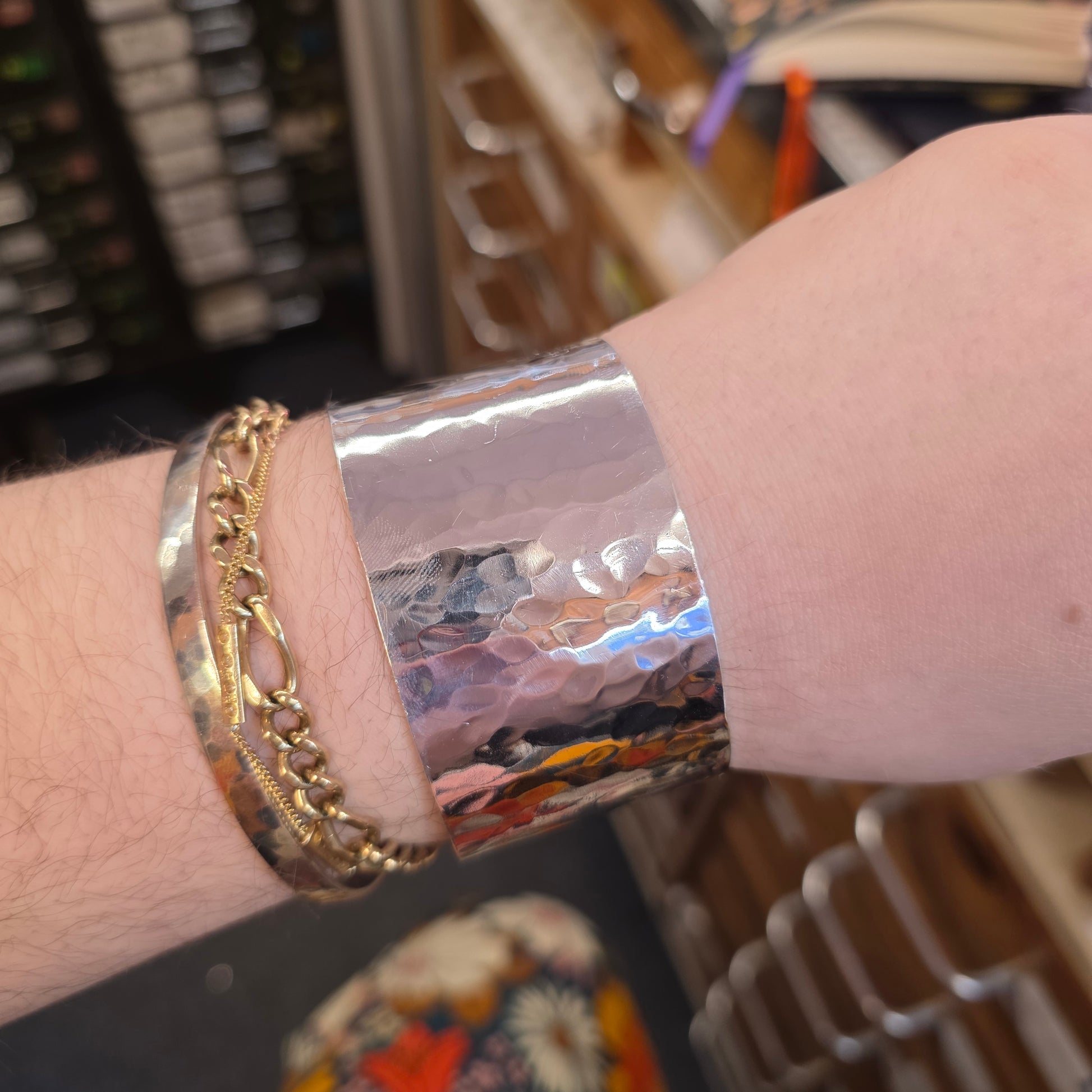 Sterling Silver Extra Wide Hammered Effect Cuff Bangle