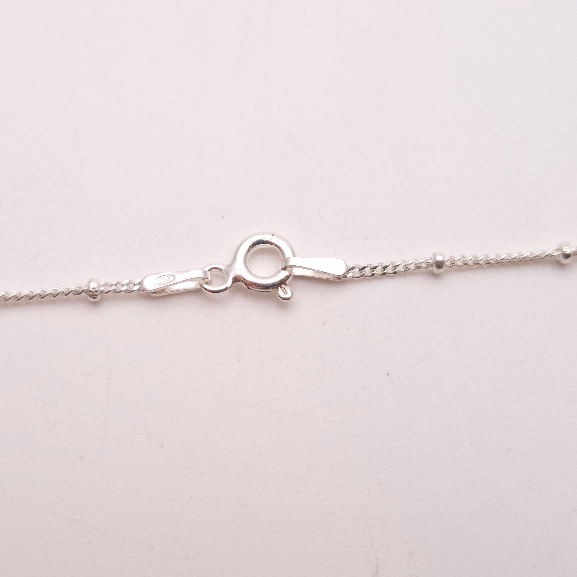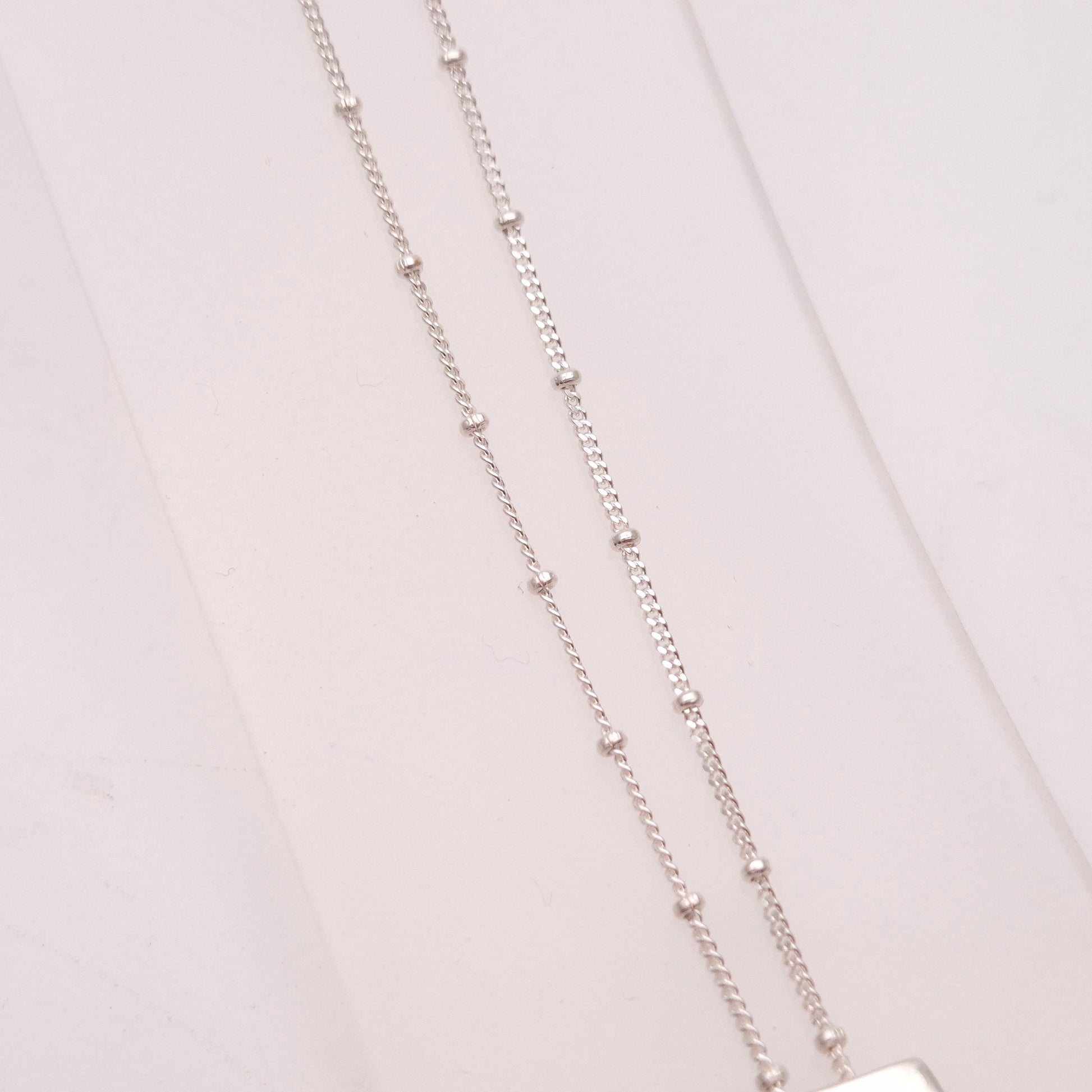 The pendant is elegantly suspended from a delicate yet sturdy sterling silver chain, which complements its modern design with beading along the chain and is finished with a secure clasp, ensuring comfortable and reliable wear.