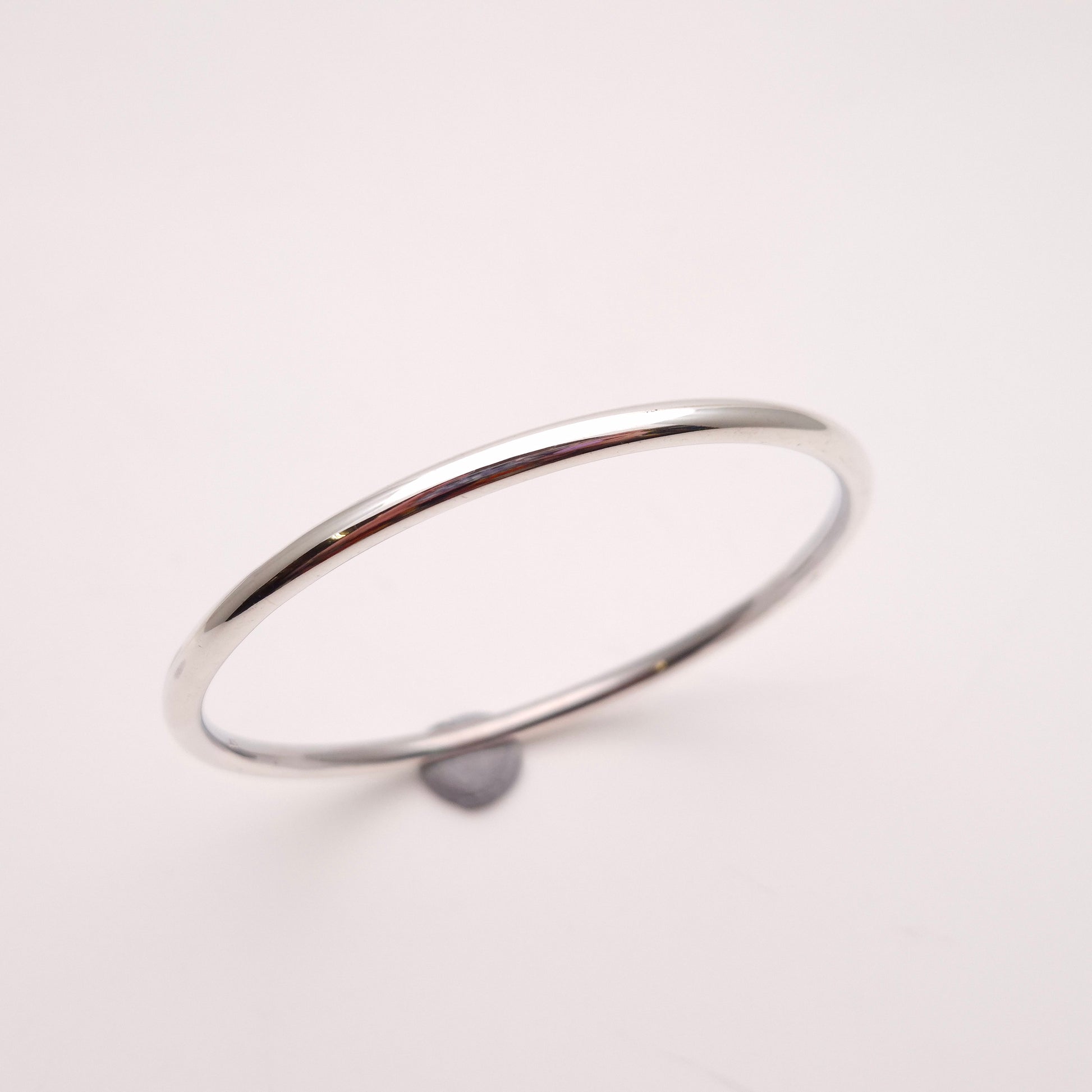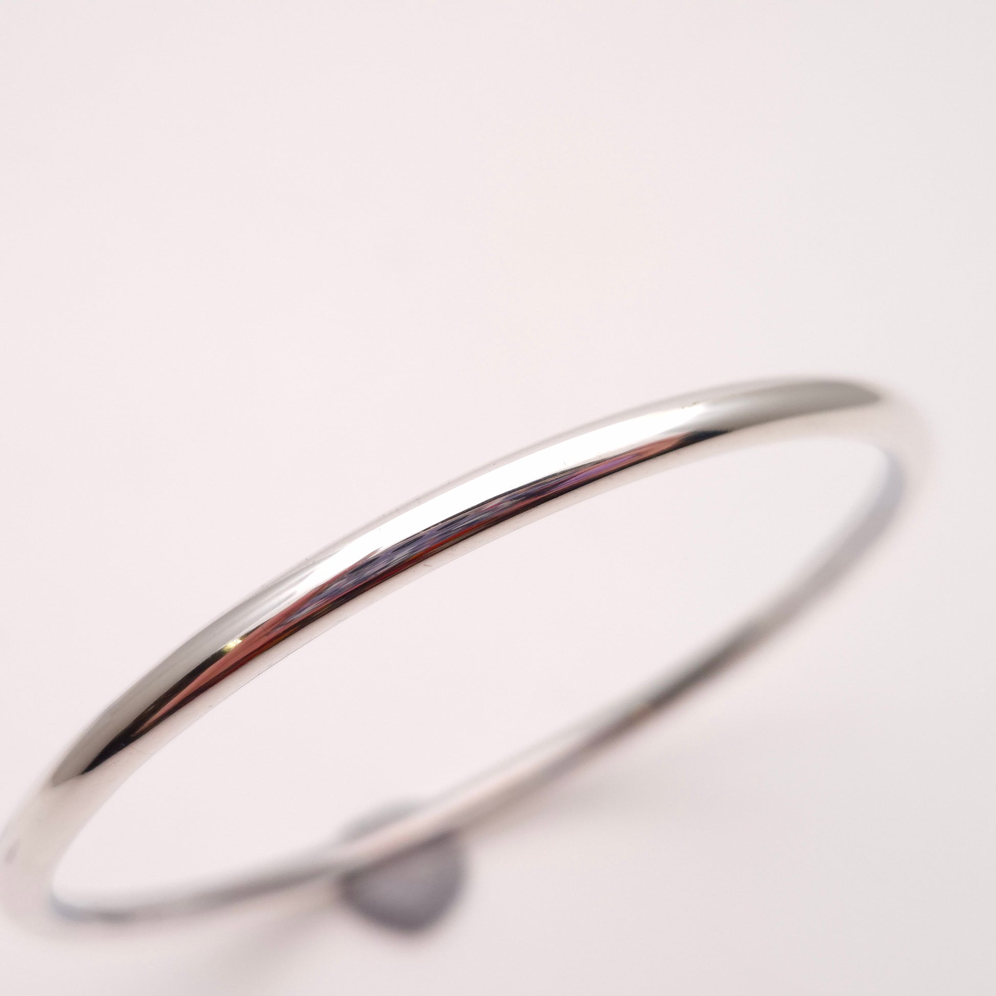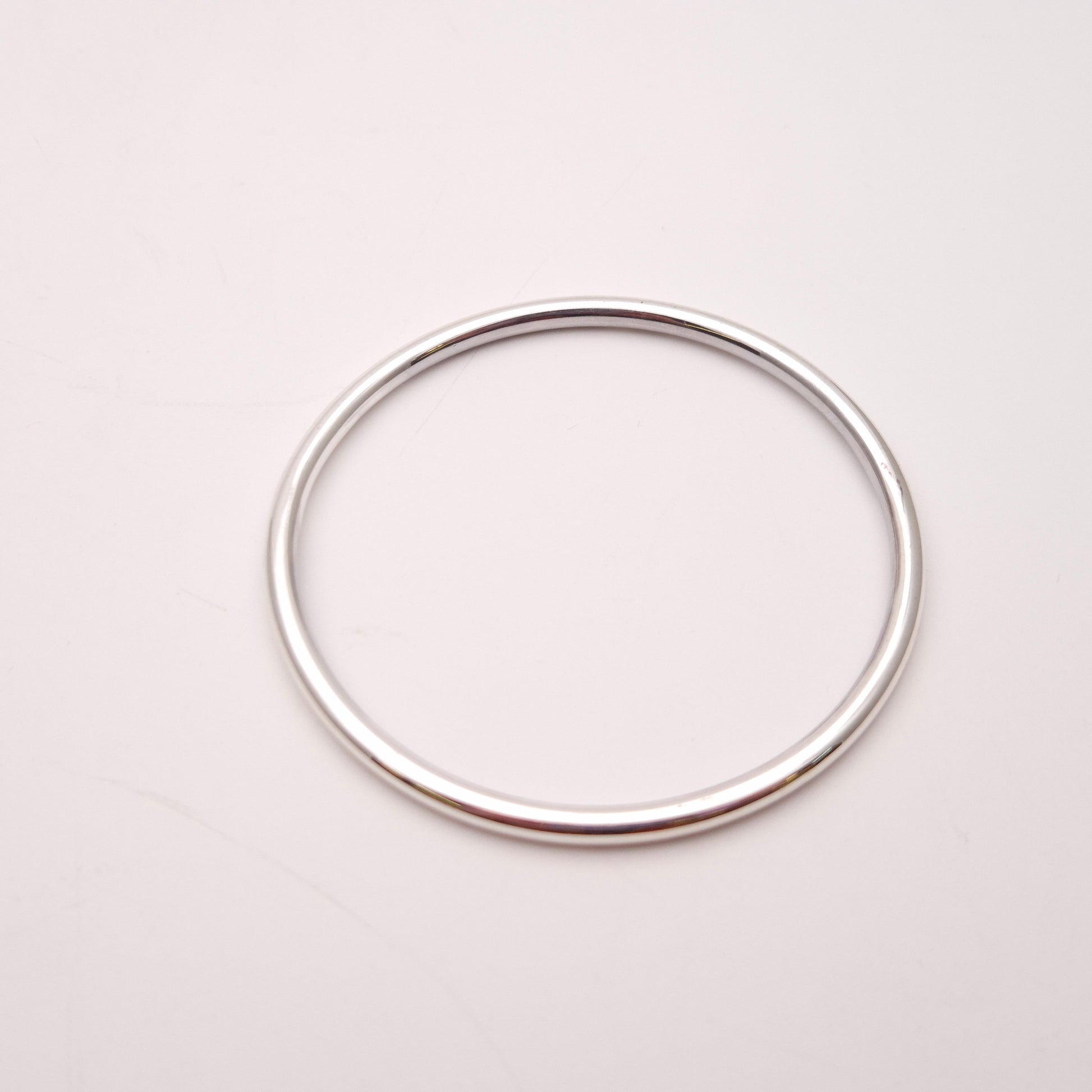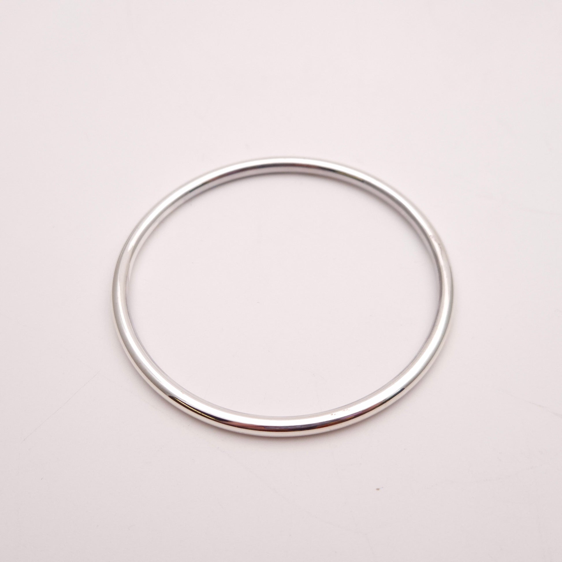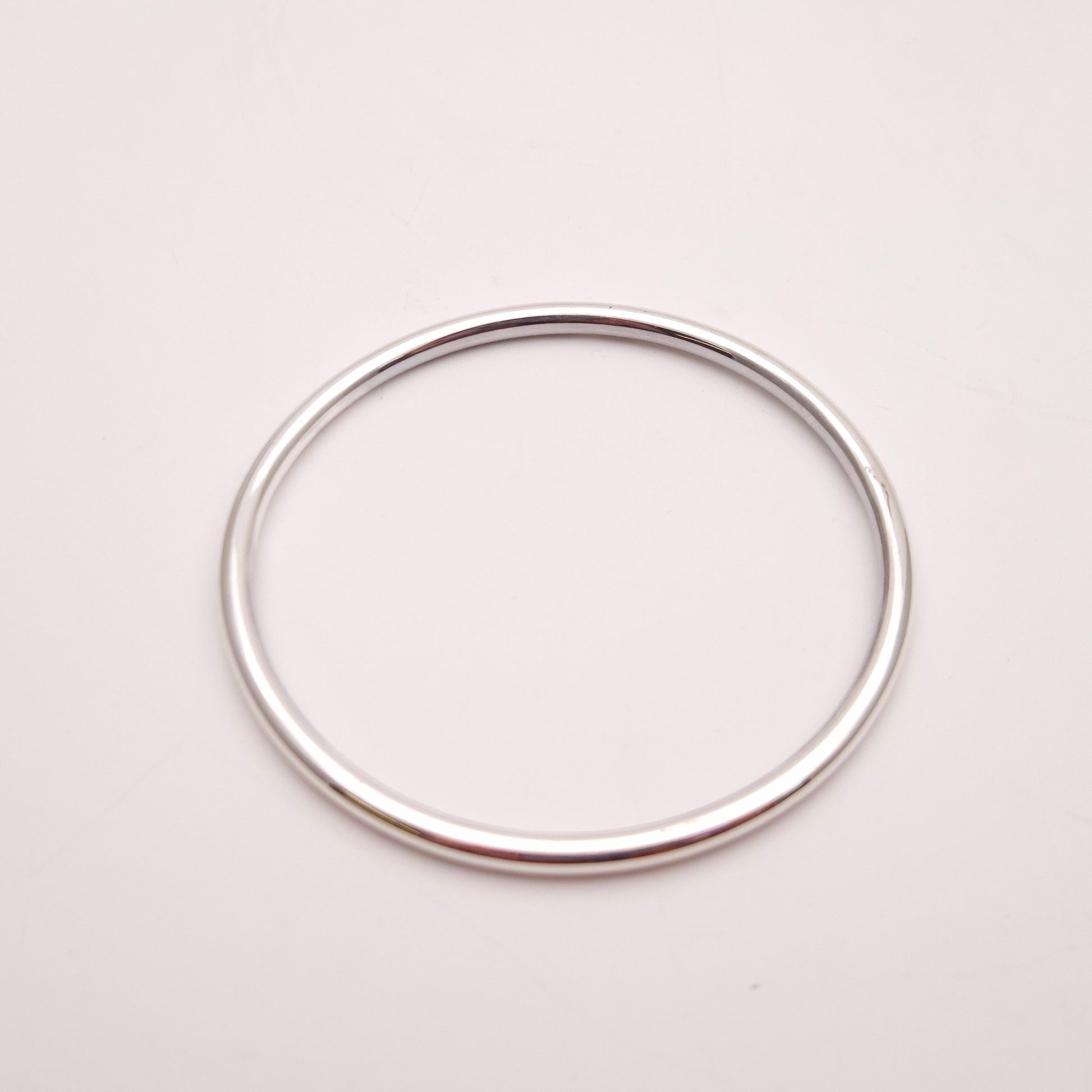 The design of this bangle is the epitome of minimalism. It features a continuous, perfectly rounded shape made from a narrow, hollow tube of silver. The hollow construction is intentional, offering a substantial look without the heavy weight and cost of solid silver, making it extremely comfortable for all-day wear. The tube is expertly joined and highly polished to achieve a radiant, mirror-like finish that catches the light beautifully and reflects its surroundings. This piece makes an excellent choice for those who appreciate sleek, modern design, desire a lightweight yet substantial accessory, and seek a timeless piece that will remain a staple in any jewellery collection.