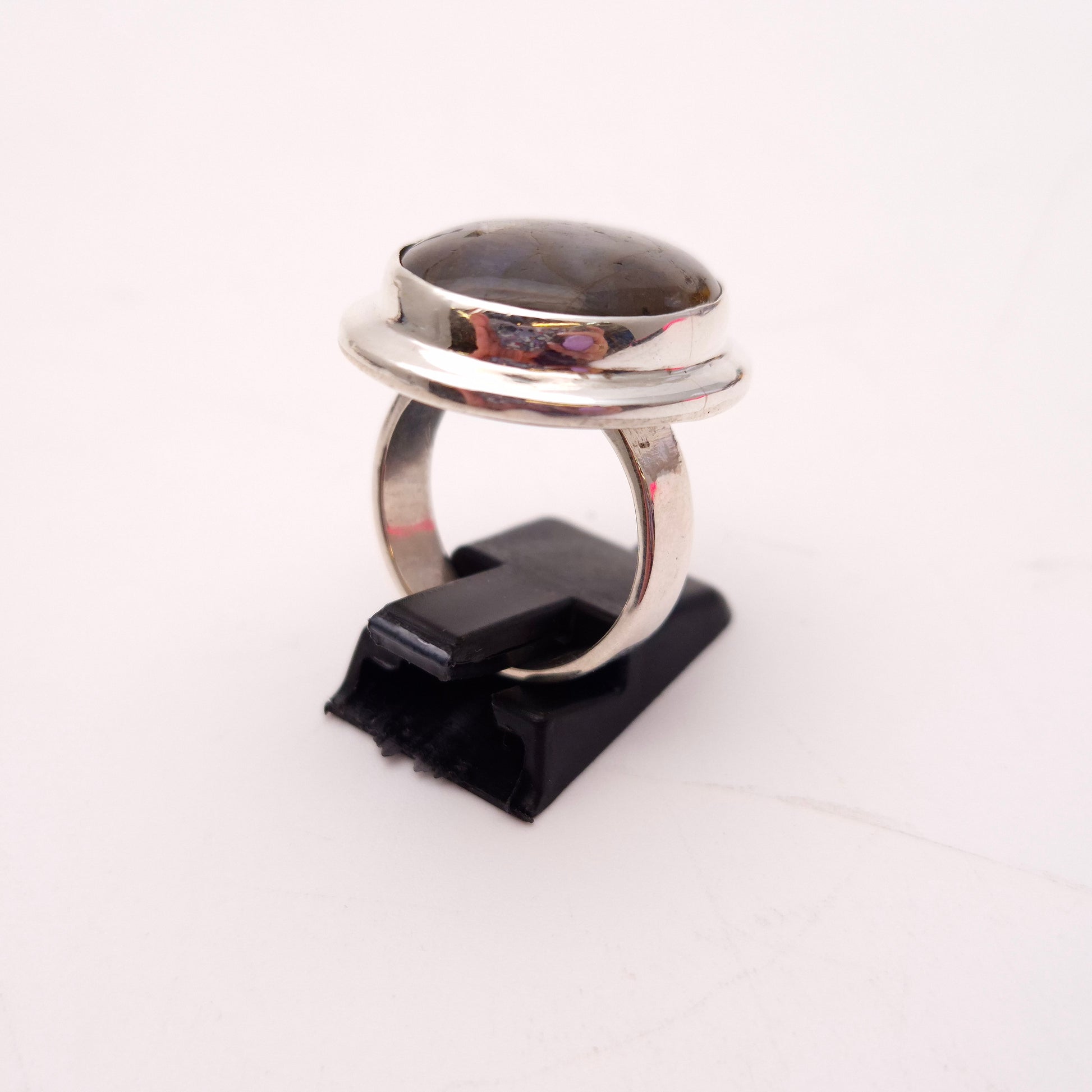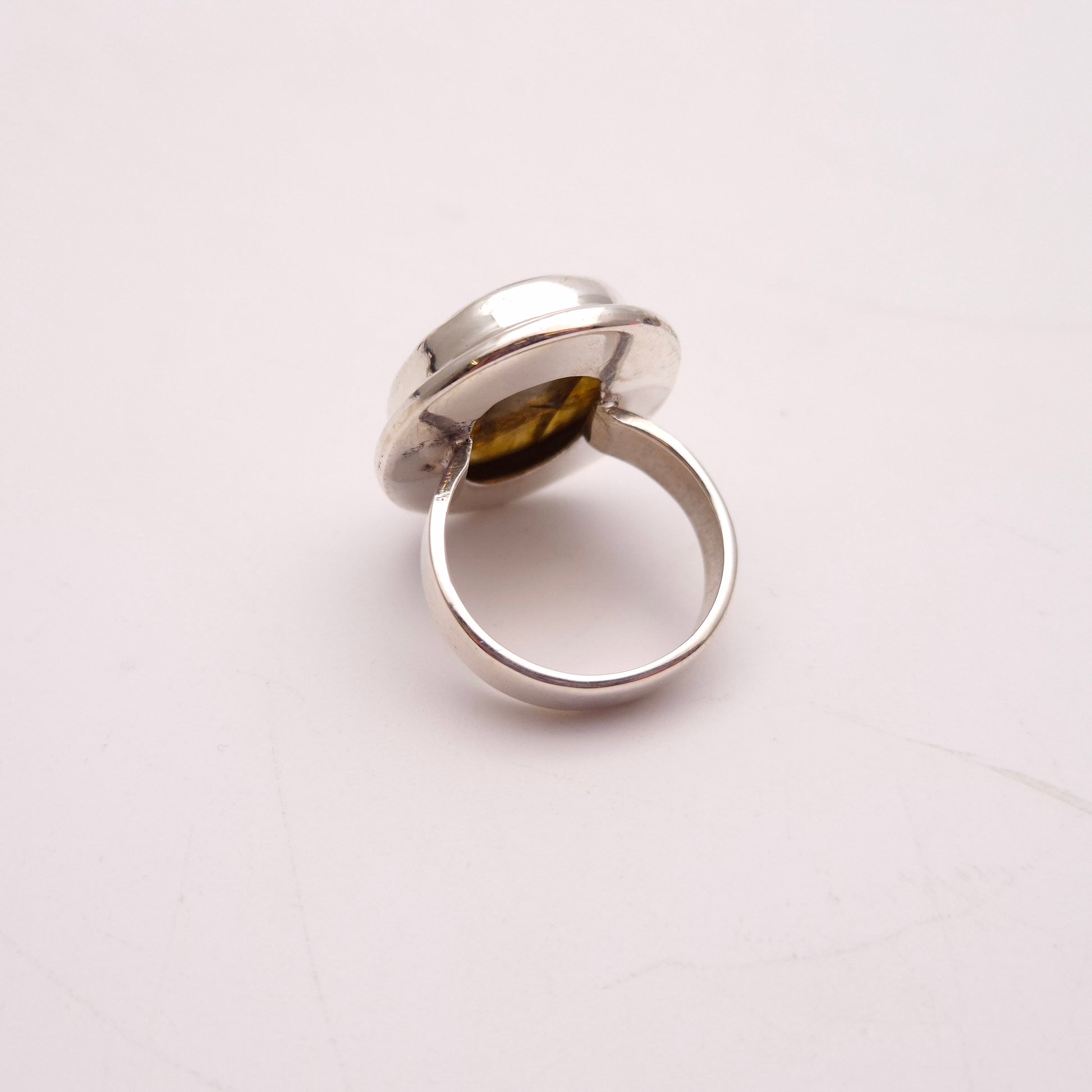 The stone is securely held in a clean and contemporary sterling silver bezel setting, with a wide, polished border that highlights the gem's natural beauty. The solid band provides a comfortable and secure fit, making this ring perfect for everyday wear.