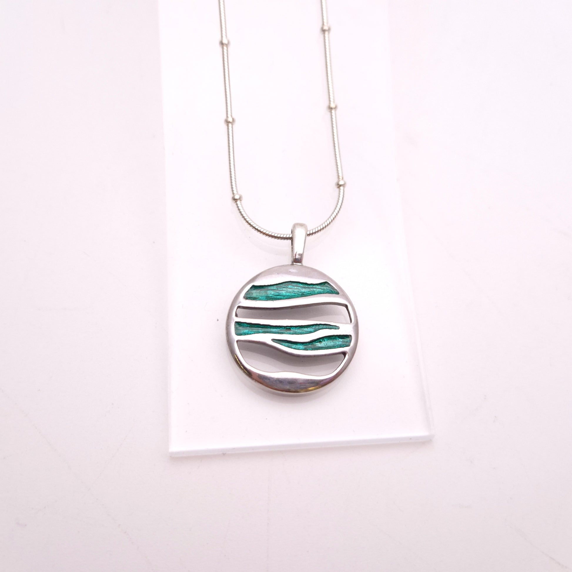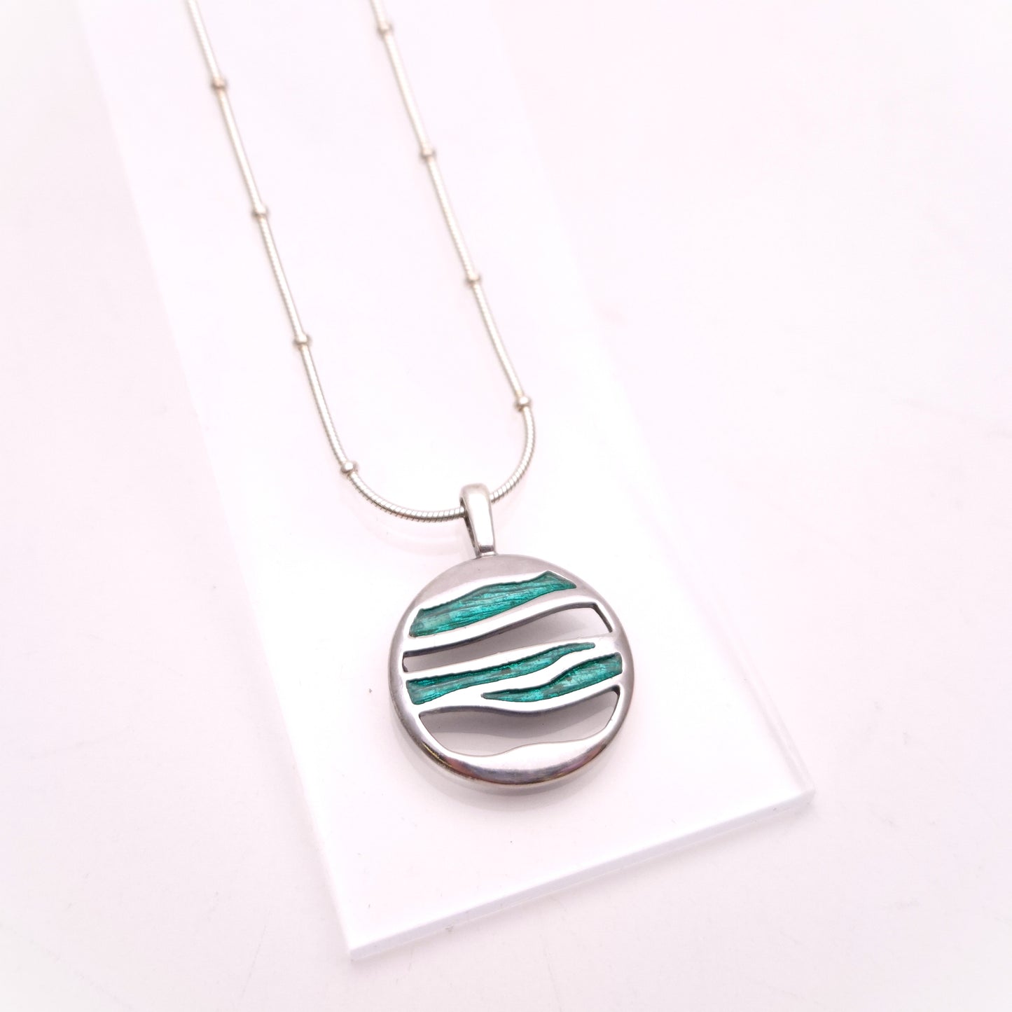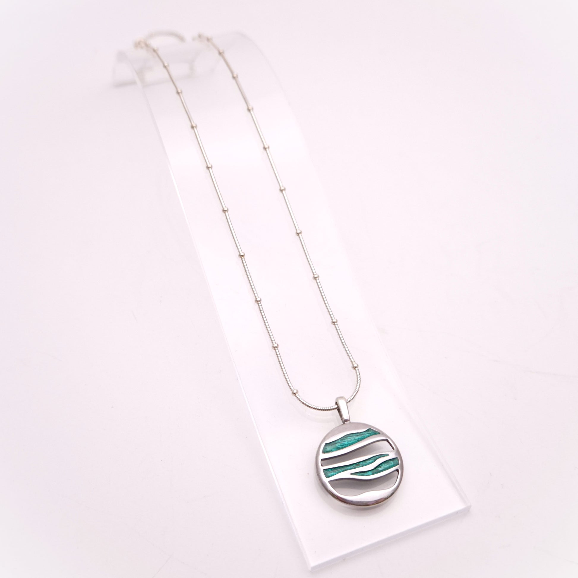 Sterling Silver Turquoise Enamel Abstract Circle Design Pendant & Chain Necklace