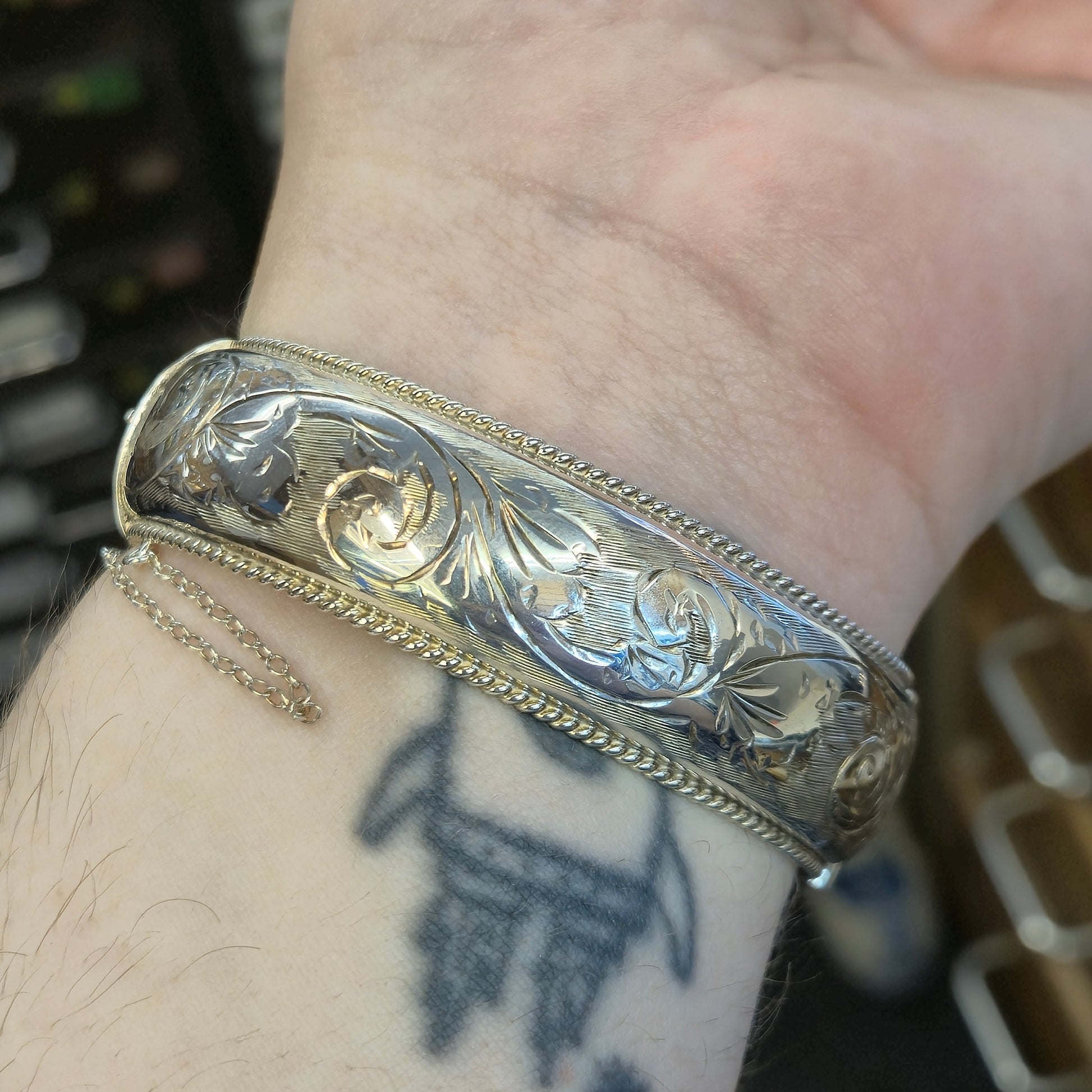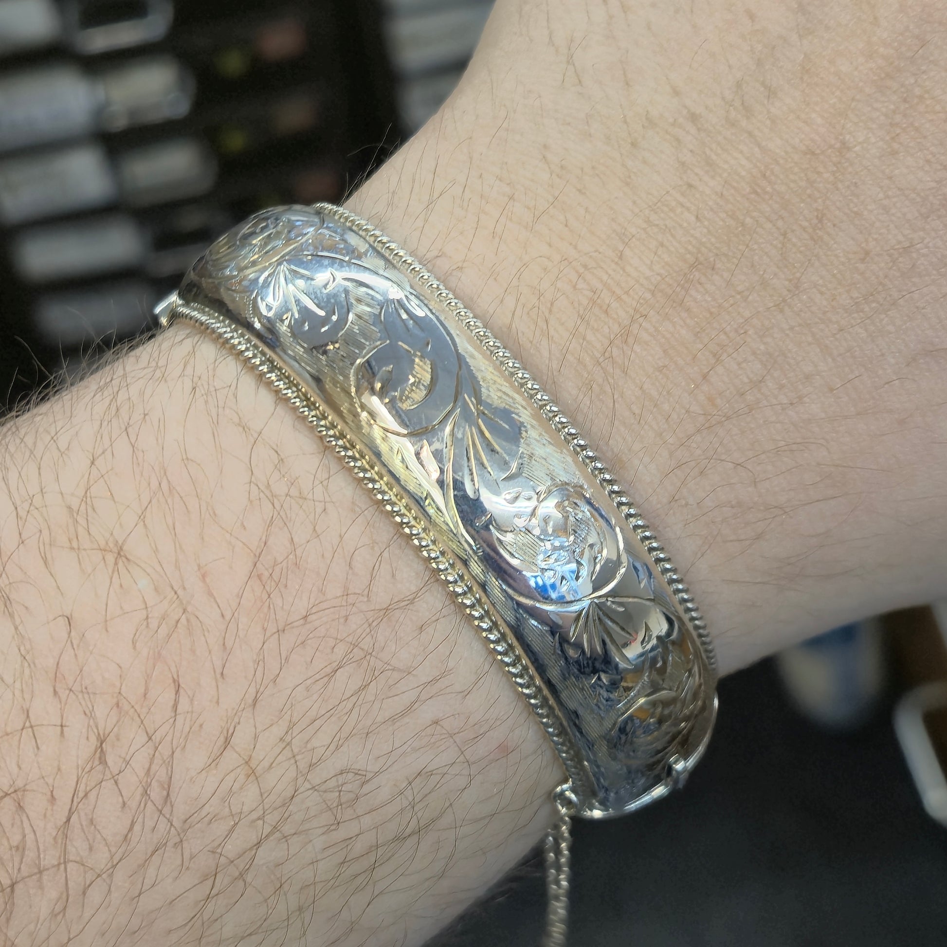 Sterling Silver Vintage Full Engraved Patterned Hinged Bangle