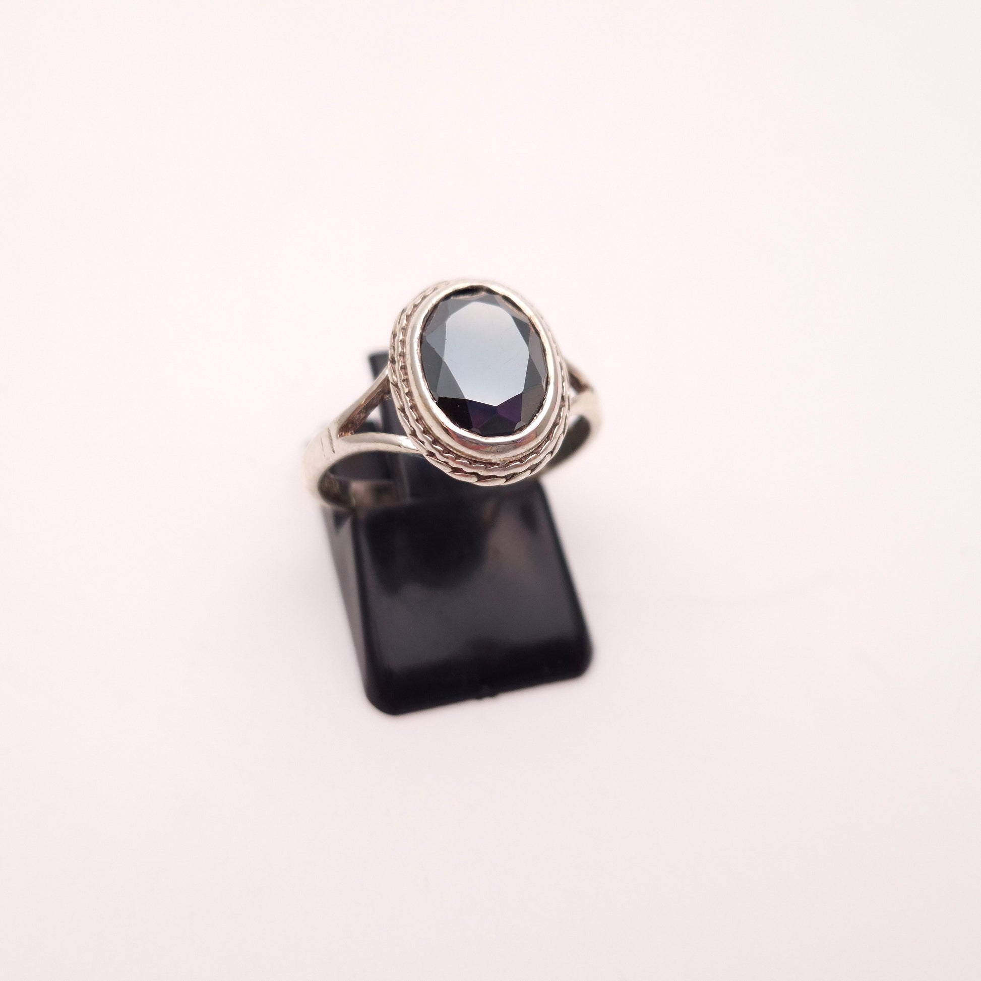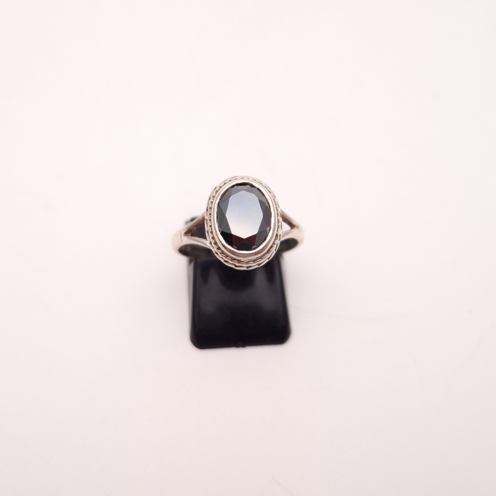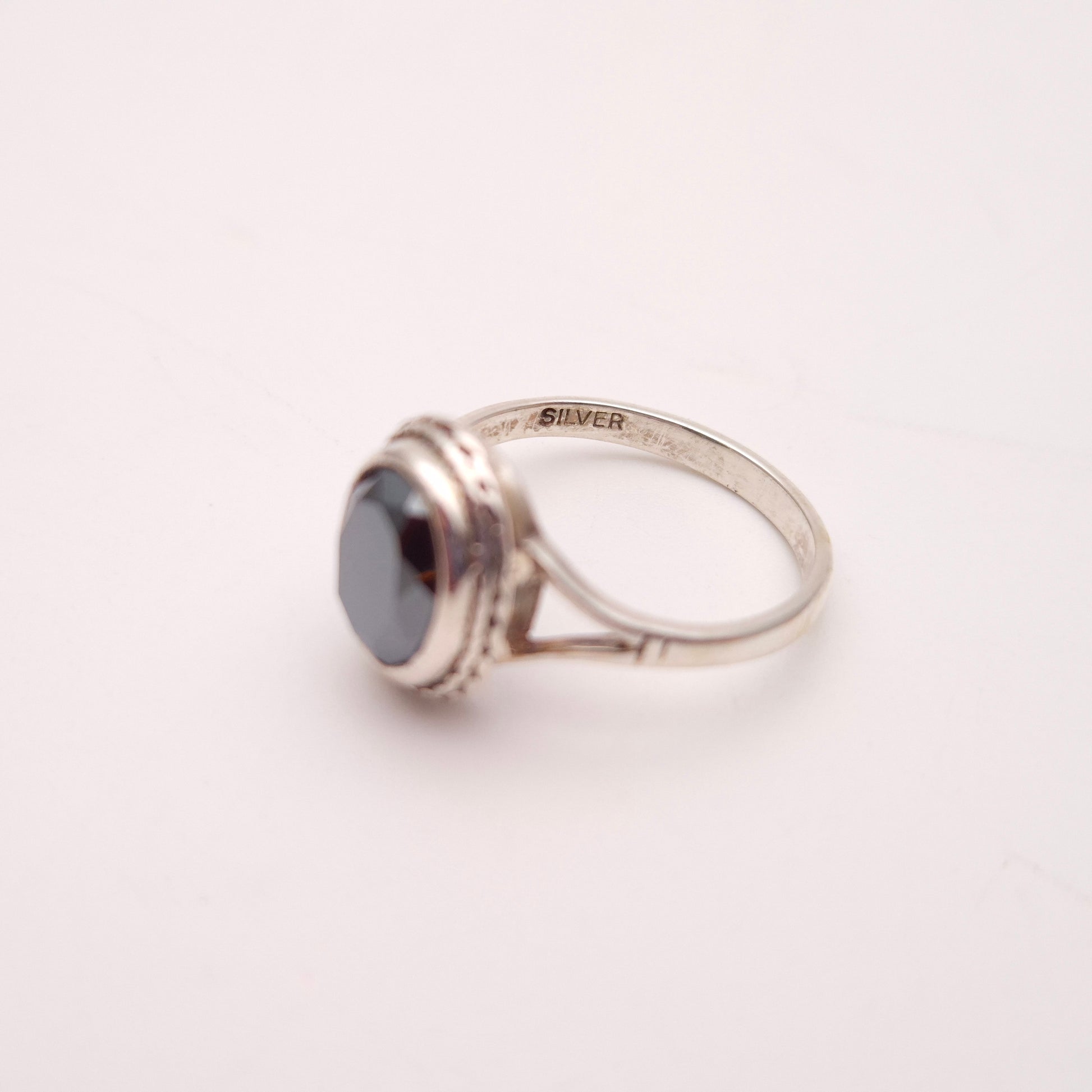 Sterling Silver Vintage Hematite Solitaire Stone Ring