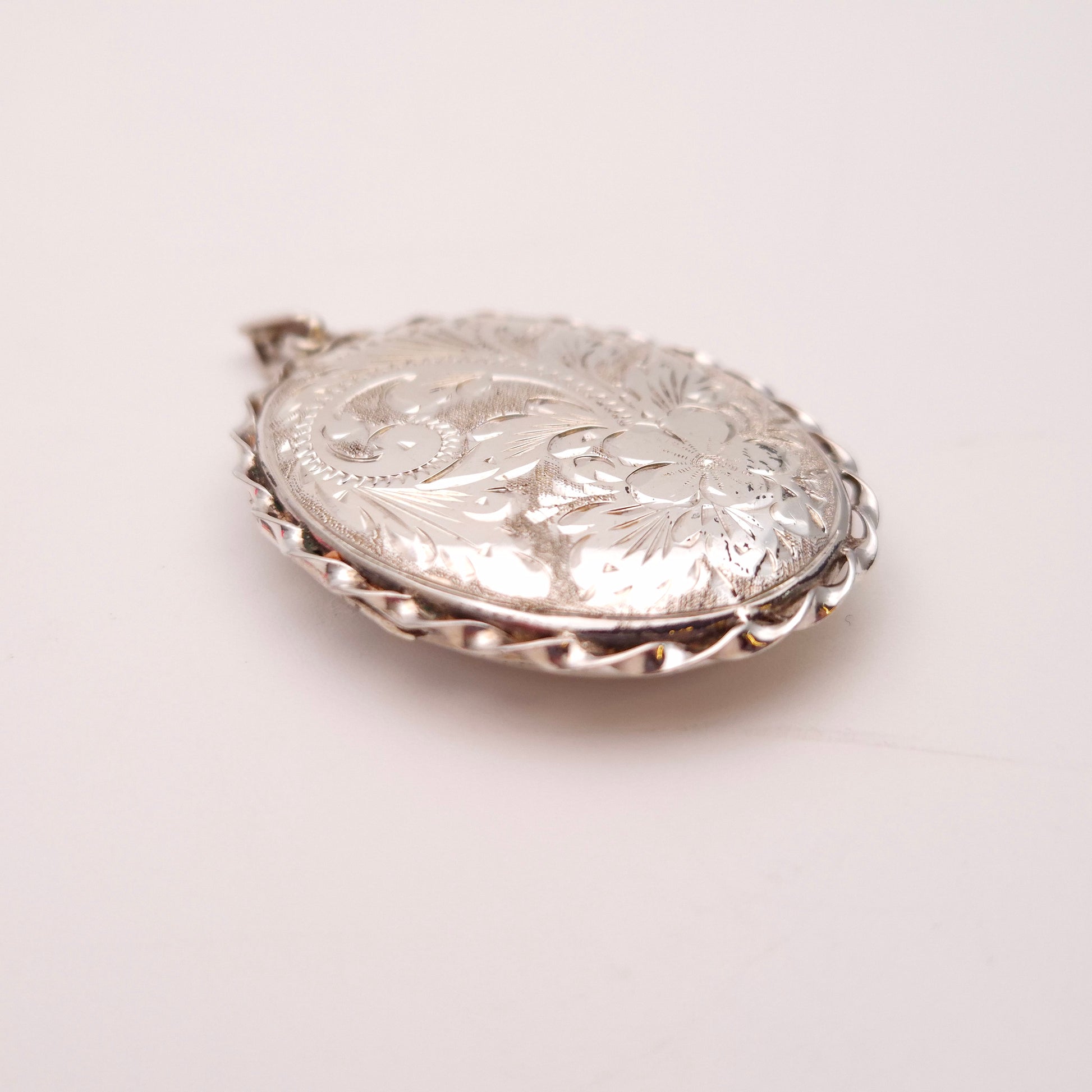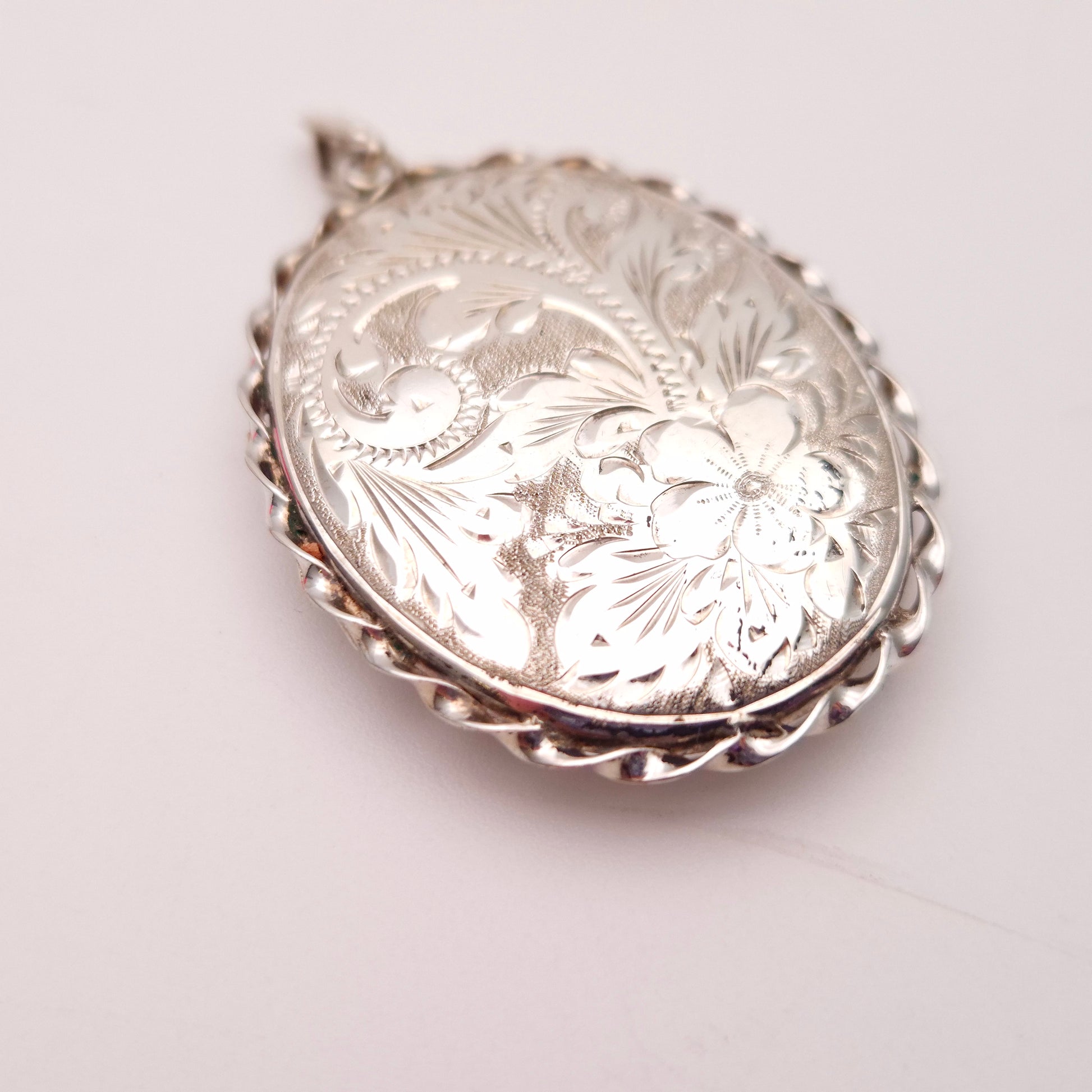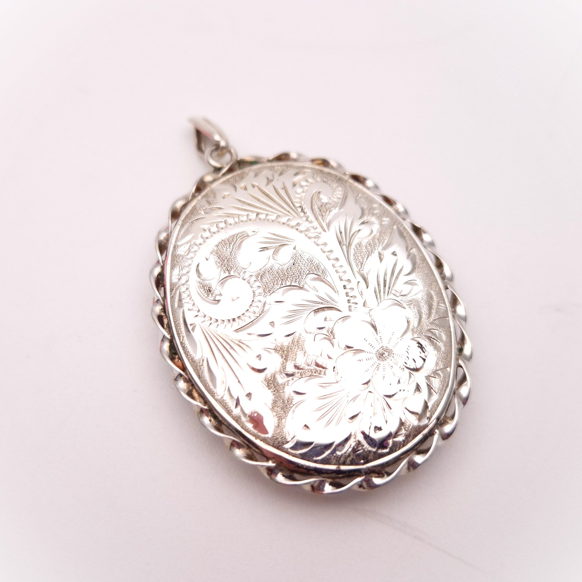 Sterling Silver Vintage Large Engraved Floral Patterned Oval Locket