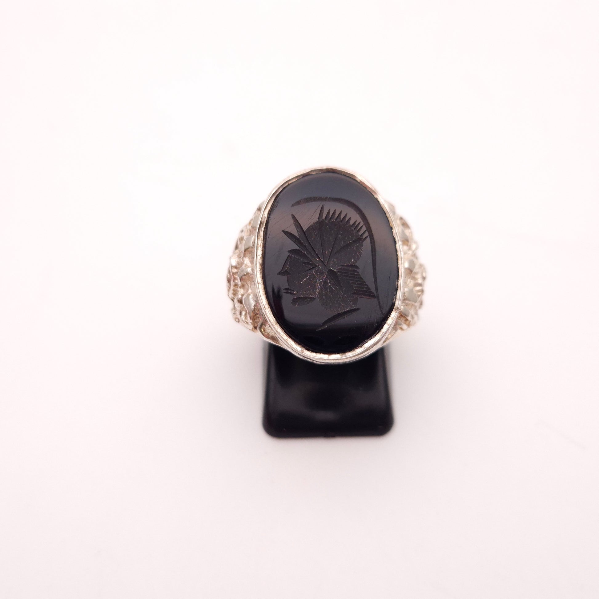 Sterling Silver Vintage Oval Carved Centurion Onyx Signet Statement Ring