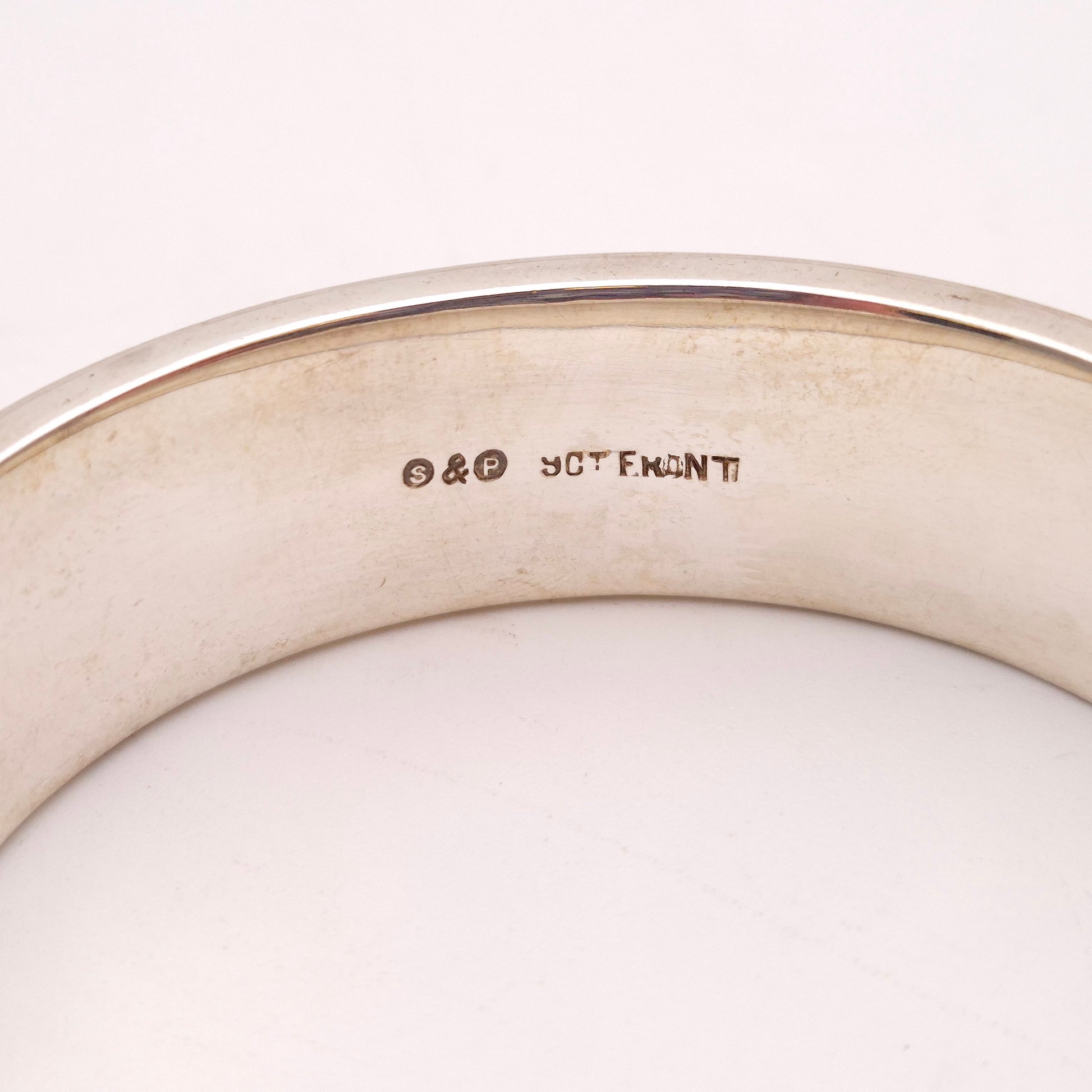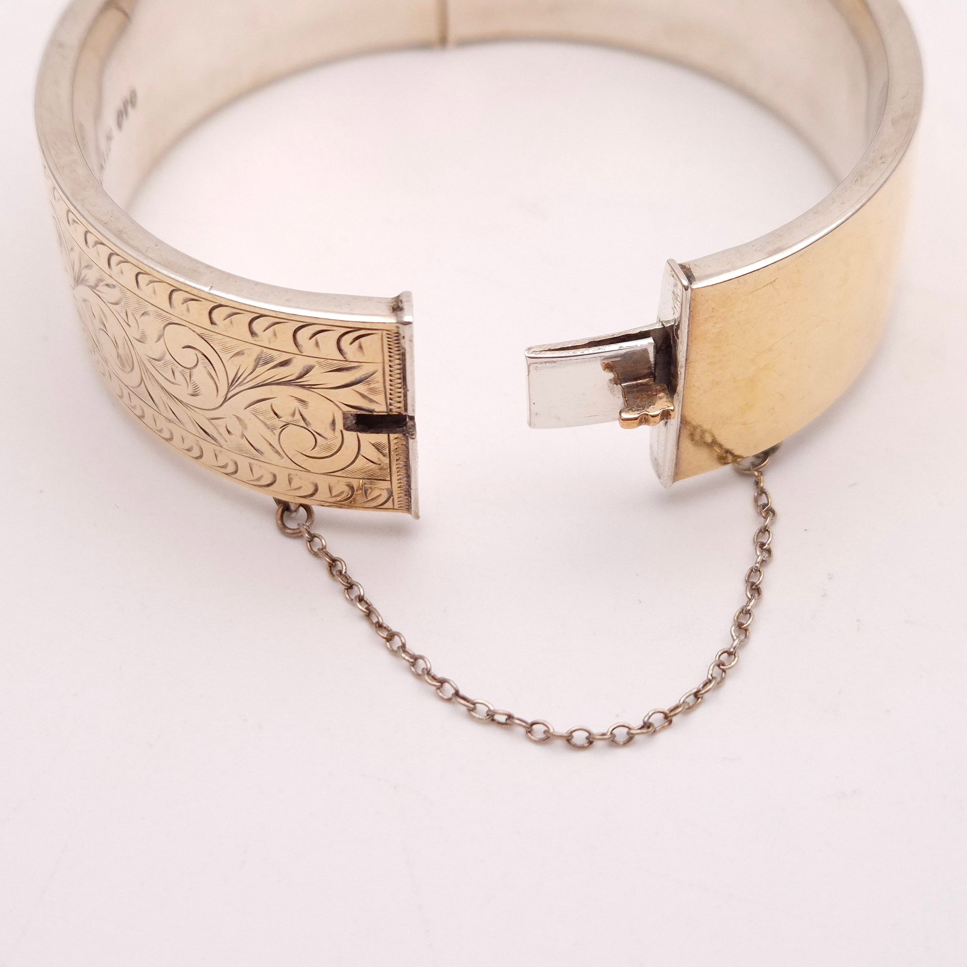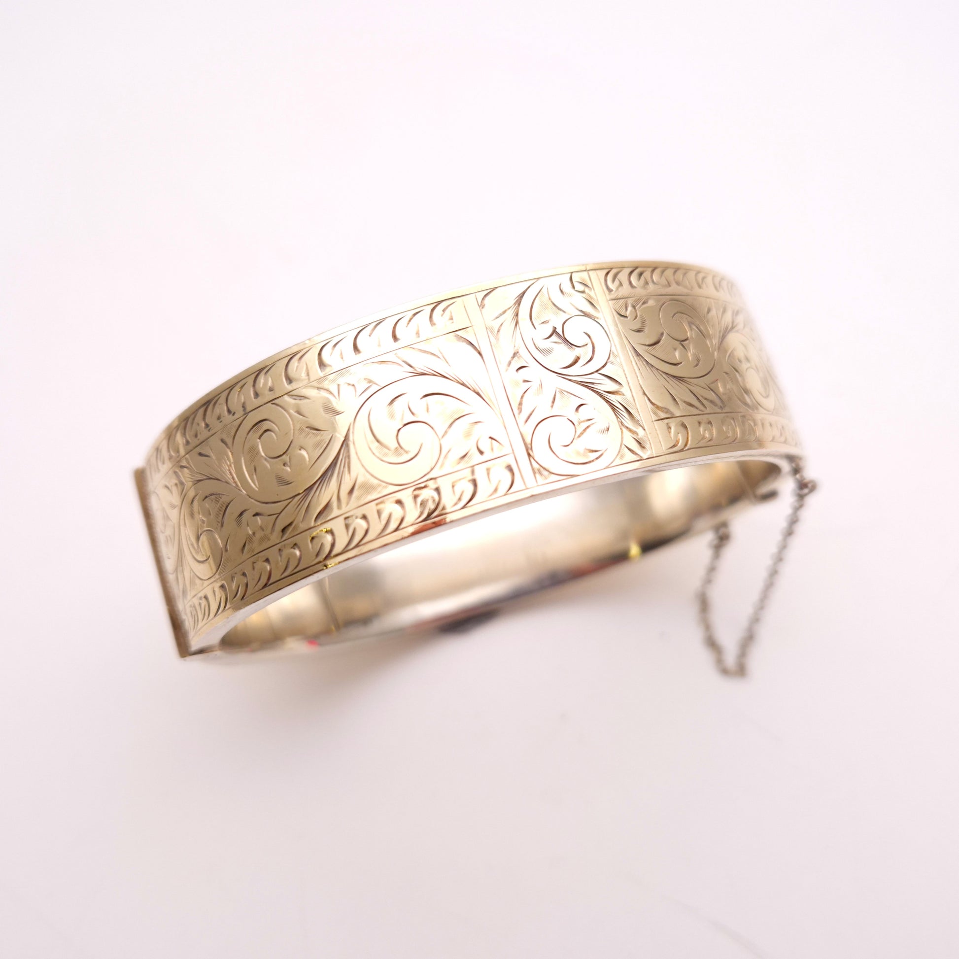 Sterling Silver with 9ct Front Foliate Engraved Patterned Hinged Bangle